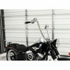 両腕を前に突き出す プッシュフォワードスタイル のエイプハンドルバーです。 前側へのカーブはギャングスタ―エイプバーと同等ですが、トップ部分が角張っていることがデザイン上の特徴です。 ハンドル径は迫力のある1.25インチ径。クランプ部分も1.25インチ径です。 ハンドコントロール部分は1インチ径です。 ハンドルクランプ径は1.25インチです。 配線中通し用の穴が開いています。 電子制御スロットル用の切り欠きが付いています。 ※切り欠きを塞ぐプラグが付属していますので、ケーブルスロットル車にもそのまま使用できます。電子制御スロットル車に使用する際はプラグを外してください。 ※写真は14インチトールです