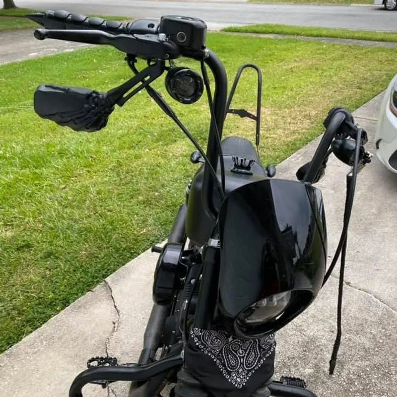 ハーレー用 ナローエイプハンドルバーです。 ボトム幅が狭く、ナローフォークモデルのトリプルの幅に収まるサイズで、スポーツスター、ダイナ、ソフテイルのチョッパーやボバーカスタムに似合います。 厚さ0.109インチ(約2.8mm)のスチールパイプ製。 CNCマンドレル曲げで作られており、スムースで綺麗な曲線です。 ハンドル径は1インチ。 クランプ部分は多くのハーレーライザーに適合する、センター間3.5インチ(約8.9cm)幅のナール付きです。 ※ハンドル配線逃がし用のディンプル付きです。 ※ケーブルスロットル車用