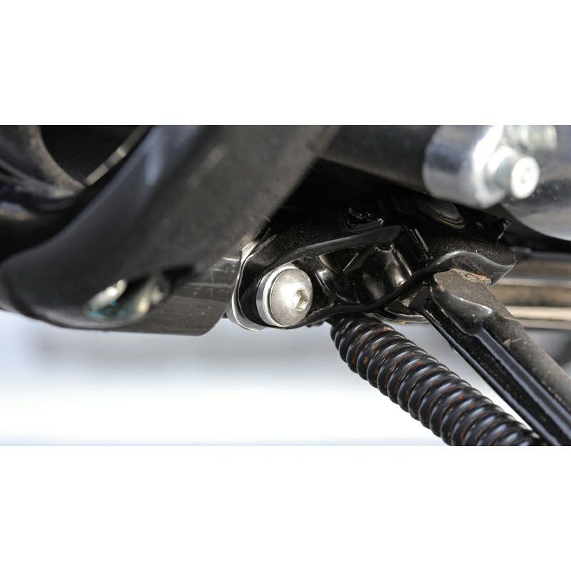 M8ソフテイルをローダウンする際、サイドスタンドがノーマルのままだと車体が立ち過ぎてしまいますが、このスペーサーを装着することにより、正常な角度に修正できます。 取付け角度を変えるだけで、サイドスタンド自体はノーマルのまま使用出来ますので、コストパフォーマンスが良く、サイドスタンドの出し入れのしずらさも生じません。 ノーマルよりも20mmローダウンした車両を想定した設計です。(角度調整は出来ません) スペーサーとソケットキャップボルトのキットです。 ※2021年以降の車両は、ピボットピンが干渉する為、取り付けできません。