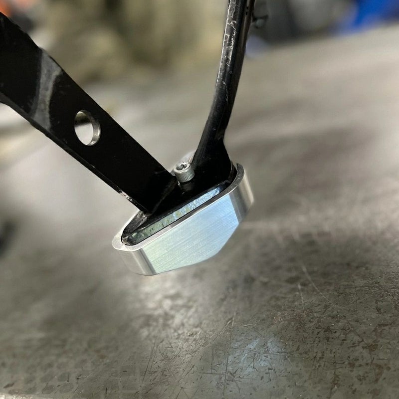 キックスタンドを1インチ(2.54cm)リフトアップするキットです。 - リアサスペンションやフロントフォークを伸ばした場合にスタンドの高さが足りなくなり、大幅に傾いてしまいます。 - キックスタンドにこの商品を取り付ける事で傾きを改善致します、キックスタンドを下ろす時、上げる時に引っ掛かりがないように輪郭に合わせてカットされています。 - 取り付け用ハードウェア付属 ※取り付けには穴あけ加工が必要です。