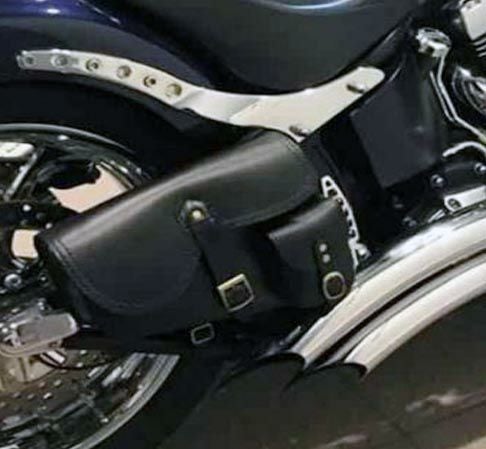 2017以前ソフテイル用 本革サイドバッグです。 <特長> ●厚手でかつ、柔軟性のある上質なカウレザーを使用。日本の職人による手作り品です。 ●メインコンパートメントに加え、小物の収納に便利な別ポケット付き ●スイングアームに取り付けます ●右側用 ●単品販売 ※標準装着サドルバッグとの併用不可 ※スイングアームにマフラーが被る場合、装着不可