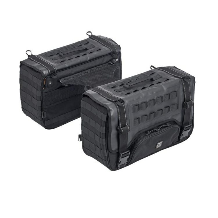 EXFIL-36サドルバッグは、様々なバイクに簡単に取り付けられるように設計されている、多機能サドルバッグです。 - UV処理を施した1680デニールのバリスティックナイロンを使用し、湿気や色あせを防止します。また、内側には耐久性の高いEVAフォームパネルを使用しています。 - PVC加工されたメインコンパートメントのセキュリティフラップは、幅1.5インチ(36mm)の反射型ポリエステルストラップとDuraflexクイックリリースバックルで開閉可能です。 - 長さ15インチ、幅7インチのPVC加工された大型のメインコンパートメントのドアには、パラコードで引っ張るだけのダブルジッパーを採用し、迅速な操作が可能です。 - 外側にはアクセサリーや追加ギアの取り付けに便利なMOLLEシステムを装備しています。 - 調整可能なフック&ループパネルを備えた2ピースのマウントヨークは、両方のバッグを頑丈なナイロンジッパーで固定します。 - バッグ底部は耐熱性のあるヘビーウェイトキャンバスパネルで補強されております。 - メインコンパートメントには3つの伸縮性メッシュポケットと1つのバーティカルポケットを装備。 - メインコンパートメント内の調節可能なストラップで、ロール状の衣類や燃料ボトルなどを固定する事が出来ます。 - 防水セキュリティフラップの内側に2つのジッパー付きメッシュドキュメントポケットを装備。 - ハイビスオレンジの内張りで中身の確認が容易に出来ます。また、メインコンパートメントには、デバイスの充電に最適な隠しケーブルポートを装備。 - メインコンパートメントを開けずにアクセスできる、セキュリティフラップの下にあるダブルジッパープル付きのクラムシェルポケット(幅240mm x 高さ114mm) - モーターサイクルの適切な取り付け位置にバッグを固定するための両面ストラップが付属しています。 - 様々なアフターマーケットのサドルバッグサポートに対応するユニバーサルフィット仕様となります。 - 外装には複数のDリング、MOLLEポイント、高強度ナイロンループがあり、カラビナやバンジーコードを使用可能。 - 伸縮性のあるギャザーとドローストリングで閉じる防水ナイロン製レインカバー付属しているので、過酷な状況下でも使用出来ます。