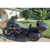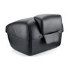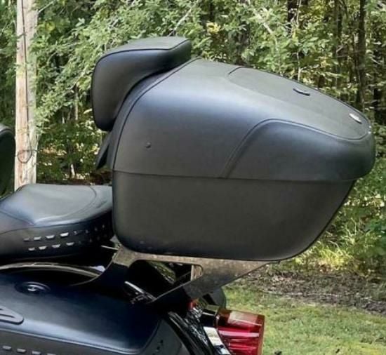 ツーリング、ソフテイル 他、ハーレー用 エクストララージサイズ・リアトランクです。 グラスファイバー製のシェルを、バイキングバッグオリジナルのViking Leather(シンセティックレザー)でラップした、高級感溢れるヘビーデューティーなトランクです。 容量は約36L(2196.9キュービックインチ)。 ハーフヘルメットやジャケット等、直ぐに出し入れしたい荷物を気軽に放り込んで走り出すような使い方にぴったりの、シンプルで使い勝手の良いデザイン。 キーロック付きですので、バイクを離れる際にも安心です。 パッセンジャー用のバックレストも標準で付いています。 汎用品ですので、取り付けはラゲッジラックに付属のブラケットとボルトで固定します。 ※バッグ底面へのボルト用穴あけ加工が必要です。