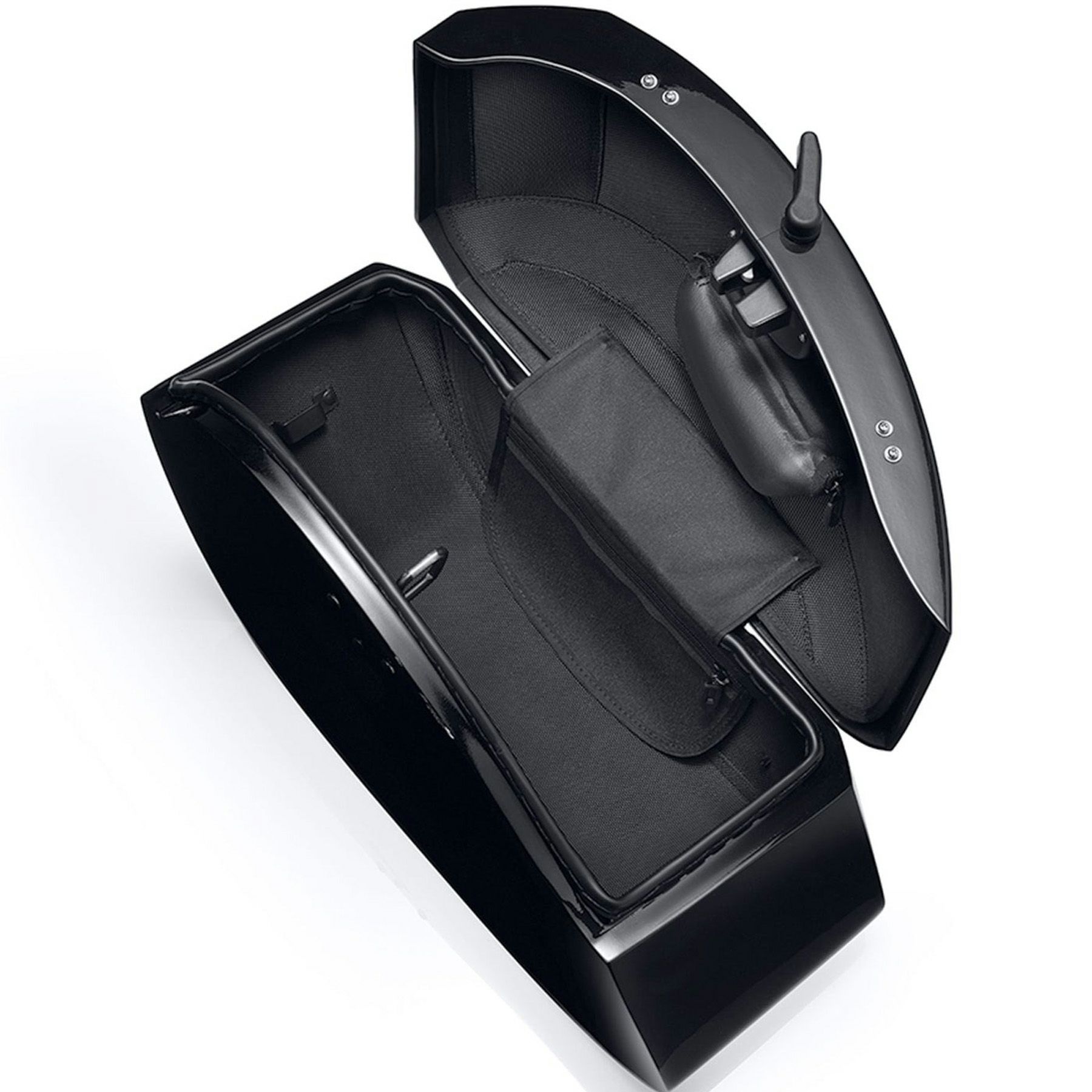 ハーレー ソフテイル用 ハードサドルバッグセットです。 <特長> ●ティアドロップシェイプのすっきりとしたスポーティーなデザイン ●ABS樹脂製の頑丈なサドルバッグ ●リッドはクイックリリースラッチ式。ワンタッチで開閉可能。更にキーロック付きでバイクを離れる際も安心 ●精悍なマットブラックカラー ●フェンダーストラットへボルト装着 ●片側14L、左右で28Lの容量 ●小物の整理に便利なベルクロ着脱式オーガナイザー付き ●ベルクロで簡単に着脱できるサングラスポーチ付き ●栓抜き付きキーリング付属 ●取付け用ボルト、スペーサー、ブラケットが付属します ●左右ペア ※取付け車種に合わせたバッグへの穴あけ加工が必要です。 ※車種によりリアウィンカー移設キット(VK-4605)が必要となります。