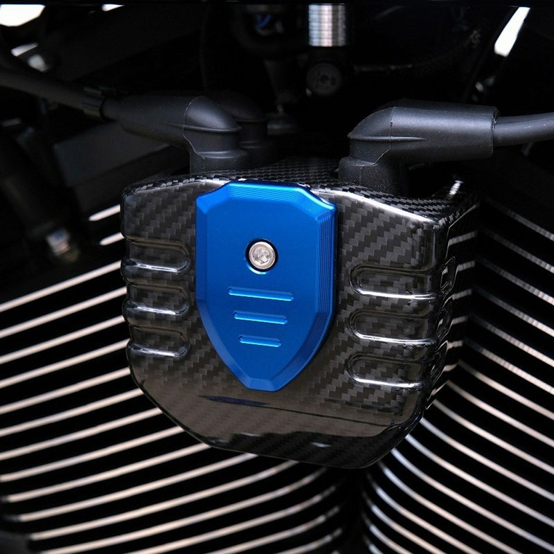 M8ソフテイル用 リアルカーボンファイバー製のイグニッションコイルカバーです。 <特長> ●最新のカーボン加工技術である、ドライカーボン製法による本格的カーボンパーツ。航空機部品にも使用される超軽量・超高強度を誇る素材です ●本物のカーボンパーツが持つ高級感溢れる質感。イグニッションコイルに被せることで抜群のドレスアップ効果を発揮します ●レーシーな綾織りカーボン柄。グロス仕上げです ●紫外線に強いUVカット加工済み ●アルマイト仕上げのアルミ製プレート付。高級感が更にアップします。カラーはゴールド、ブルー、レッドからお選びいただけます