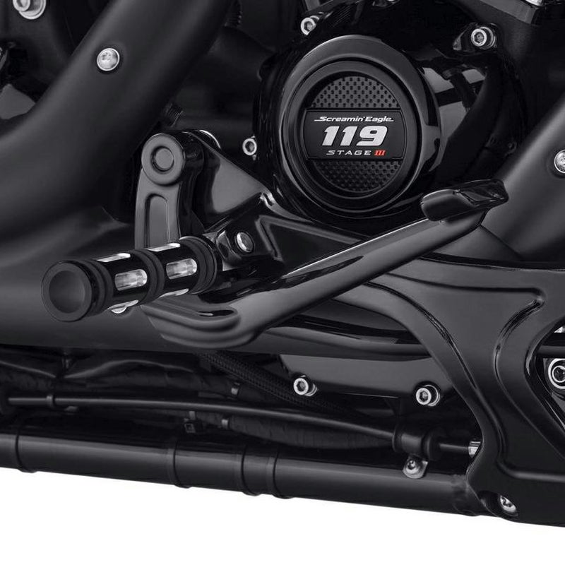 ハーレー M8 スポーツグライド、ファットボブ、FXDR114用のブレーキ側ミッドコントロールキットです。 スポーツライディング時のフットコントロールをし易くなります。 このキットは周辺のカバー類を変更することなしにボルトオンで装着出来ます。 ブラケット、ブレーキレバー、その他ハードウェアが付属します。 ※フットペグは付属しません。 別売のシフト側ミッドコントロールキット(50502041)との組み合わせで完璧なミッドコントロールになります。 ブレーキ側のみ、単品販売