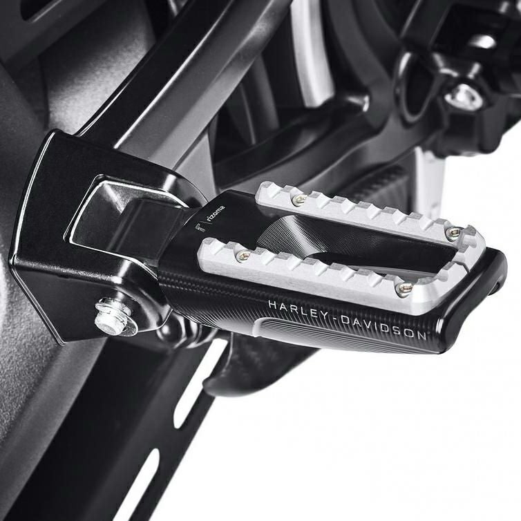 ハーレー M8ソフテイル用 パッセンジャーフットペグセットです。 高品質アルミ削り出しパーツで定評のある、イタリアRIZOMA社とハーレーダビッドソンのコラボによるカスタムフットペグです。 すっきりとしたシンプルなシェイプに、非常に精緻なカットが施されています。 ブラックの本体に、シルバーの滑り止めがボルト止めされています。 サイドにはHarley Davidson(ハーレーダビッドソン)、上面にはRIZOMAのロゴが、主張し過ぎず、すっきりと刻印され、洗練されたモダンなルックスです。 左右ペア