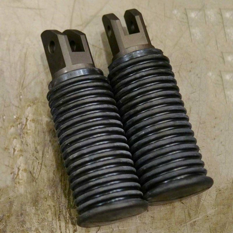 スポーツスターS、ナイトスター、M8 ソフテイル用 レトロスタイルのフットペグです。 <特長> ●1970年代のハーレー純正フットペグのレトロなスタイル。チョッパー、ボバー、フリスコスタイルカスタムにベストマッチ ●シンプルな縦溝の丸形ラバー ●経年劣化しずらい、日本製良質ラバーを使用 ●コア部分はソリッドスチールの削り出し加工品。軽量化のためセンターをくり抜く凝った作り。防錆パーカーライジング処理(リン酸亜鉛処理)済み ※ライダーポジション用 ※M8 ソフテイルのフットボード装着車不可