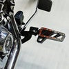 M8ソフテイル、スポーツスターS、ナイトスター用 ライダーフットペグです。 <特長> ●長さがM8ソフテイル標準装着ペグよりも30mm長く、足の自由度が高まります ●かかとを乗せる部分(長さ30mm)があり、安定感をもたらし長距離のツーリングも快適に過せます ●滑り止め兼ブーツによるキズ防止用のステンレスボルトがデザインアクセント ●フットペグの角度は好みに合わせて調整可能 ●アルミニウム削り出し加工品 ●ブラックカラー、腐食に強いアルマイト仕上げ。上面のトリムはクロームメッキ仕上げ ●左右ペア ※写真は他のカラーのものを含みます(参考写真)
