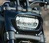 ファットボブ専用LEDヘッドライト。 シャークネード・フェアリングにも使用可です。 照度が高く、前面を明るく照らします。 ランニング・ライト付き。 M8ソフテイルのファットボブ純正装着LEDヘッドライトと同形状のヘッドライトです。