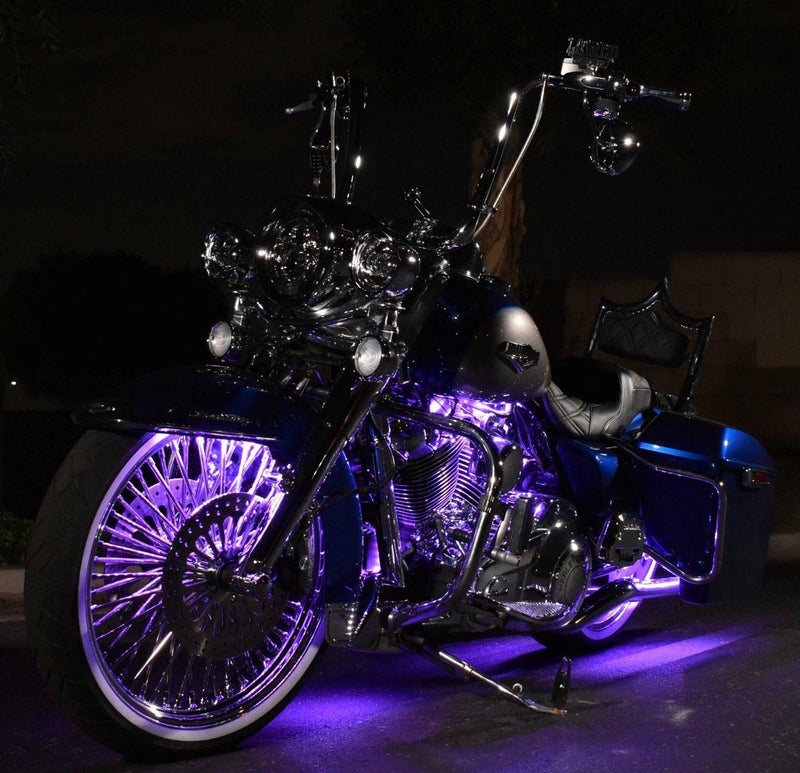 マルチカラー対応、防水フレキシブルLEDライトストリップ。 16色に切り替え可能なストリップライト。 4インチ、6インチ、8インチの長さのストリップライトが2本ずつ付属します。 高輝度LEDアクセントライトで夜間走行時のバイクの外観を飾ります。 ストロボ、フラッシュ、フェード、の各機能に切り替えが可能。 ワイヤレスリモコン付属。
