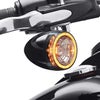 2014以降 ハーレー ツーリング、ソフテイル、ダイナ、トライクの、ブレットタイプフロントターンシグナル用 LEDバルブです。 ノーマルのブレットウィンカーのレンズとバルブを取り外し、このLEDバルブに取り換えるだけで、昼間でも視認性の高いLEDターンシグナルに変わります。 外周のリングのLEDがアンバーに発光し、ターンシグナルは中央のLEDがアンバーに点滅します。 レンズは外周部がスモーク、中央がクリアです。 ※ハウジングがプラスチック製のウィンカーへの装着不可 ECE規格適合品(Eマーク付) 左右ペア