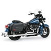ソフテイルのマフラーは片側出しですが、このエキゾーストはバランスの良い左右出しスタイルに変えます。 ヘリテイジクラシックやデラックスに特に似合います。 マフラーエンドはシャークテール(フィッシュテール)(フィッシュテール)ですので、ノスタルジックな雰囲気を一層引き立てます。 エキゾーストパイプ外周を220度カバーする、16ゲージ厚のヘビーデューティーなフルカバー・ヒートシールドが付属します。 ヒートシールド外径は2.5インチです。 O2センサー用ポート付です。 音量を下げたい方は、別売消音バッフル(AC00173)を使用してください。 ※2021以降 ソフテイルは、O2キャンセラー(1081-0009)が別途必要です。 ※FLHC/S、FXLRST、FLSBに取り付けるには別途サドルバッグサポートアダプター(AC00249)が必要となります。