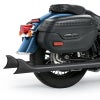 ソフテイルのマフラーは片側出しですが、このエキゾーストはバランスの良い左右出しスタイルに変えます。 ヘリテイジクラシックやデラックスに特に似合います。 マフラーエンドはシャークテール(フィッシュテール)(フィッシュテール)ですので、ノスタルジックな雰囲気を一層引き立てます。 エキゾーストパイプ外周を220度カバーする、16ゲージ厚のヘビーデューティーなフルカバー・ヒートシールドが付属します。 ヒートシールド外径は2.5インチです。 O2センサー用ポート付です。 音量を下げたい方は、別売消音バッフル(AC00173)を使用してください。 ※2021以降 ソフテイルは、O2キャンセラー(1081-0009)が別途必要です。 ※FLHC/S、FXLRST、FLSBに取り付けるには別途サドルバッグサポートアダプター(AC00249)が必要となります。