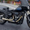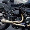 M8ソフテイル用 2-1フルエキゾーストマフラーです。 <特長> ●4インチ(最大)径のショートタイプ・リバースコーンタイプのマフラーボディがすっきりとしたスポーティーなルックスです ●ステンレスブラシ仕上げ。TIG溶接痕がスポーティーな雰囲気です ●2.25インチ径の穴開きバッフル内蔵。深みのあるサウンドとともにトルクアップします ●0.065インチ(約1.65mm)厚のステンレスパイプ製。1-3/4インチ~1-7/8インチ径へ径を増し、2インチ径の集合部分へ繋がることで、排気をスムースに流し、排気効率がアップします ●12mm/18mm O2センサー対応 ●取付けに必要なハードウェアが付属 ※ファットボーイ、ブレイクアウト不可 ※ローライダーST、エルディアブロ、スポーツグライドはサドルバッグサポート用マウントブラケット付属モデル(SPC-1-001-ST)をお選びください。