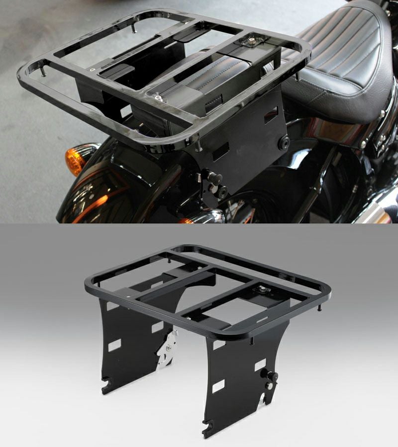ハーレーダビッドソン純正のドッキングハードウェア(別売)に装着可能で容易な脱着ができるキャリアです。 独自設計のロック機構により、従来よりもスムーズな脱着が可能となりました。 ※お取付にはハーレーダビッドソン純正ドッキングハードウエアが必要です。 ※タンデムシート装着のままご使用可能ですが、2名乗車は不可となります。 ※STスタイルといったハードサドルバッグ装着車両は ラックのロック部分が干渉してしまう為装着出来ません。 【最大積載量】5kg