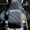 ロープロファイルスタイルのツーアップシート。 標準装備のシートよりもシートパンが2インチ(約5cm)狭く作られているので、足つき性が向上します。 ドライバーの腰部はバケット形状になっており、優れたサポート性を持っています。 座面にはダブルダイアモンドステッチが施されています。 同メーカーのシーシーバー(ERSFTM81-SCDDRED、ERSFTM81-GBDDRED)と同デザインです。