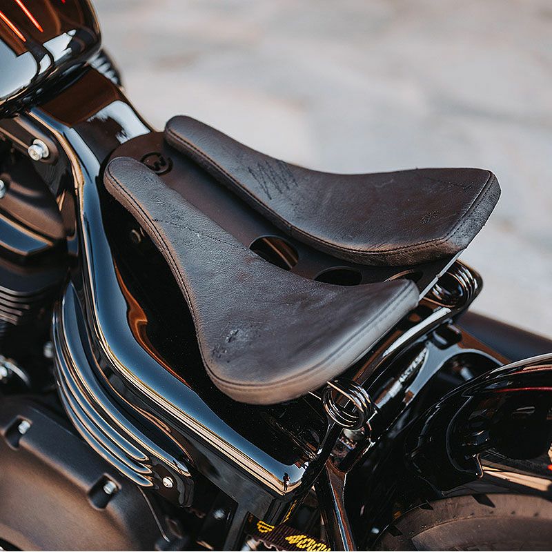 スッキリとした個性的なデザインのソロサドルシート。 オールドスクールスタイルのカスタムに最適です。 ボルトオンで簡単に装着出来ます。 その他、フレームカバー(HD-BRO126)、Resonating リアフェンダー(HD-BRO127)と併用する事で、完璧なオールドスクールスタイルにする事が出来ます。 装着写真は全て装着してあります。
