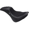 M8ソフテイル ストリートボブ、スタンダード用 ツーアップシートです。 <特長> ●Mustang(マスタング)とヨーロッパのカスタムビルダー、FRED KODLIN(フレッドコドリン)のコラボによるスペシャルデザイン ●スポーティーなファストバックスタイル ●ライダー座面はロープロファイルのバケット型。高いバックサポートと共に腰をしっかりとホールドします ●パッセンジャー座面はすっきりとしたスリムなルックスですが十分な長さがあり、快適な座り心地です ●座面表皮パネルにはアルカンターラを使用。ガンメタルのダイアモンドステッチがアクセント ●高密度シートフォームは長年の使用でも型崩れしません ●シートベースは船舶部品グレードの高耐久グラスファイバー