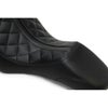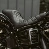 M8ソフテイル ヘリテイジクラシック、デラックス、スリム用 ツーアップシートです。 座面はパンチング素材にダイアモンドステッチの組み合わせ。センターのトリムがデザインアクセントになっています。 モダン・オールドスクールな雰囲気で、最新のM8 FL系ソフテイルにマッチします。 ノーマルシートよりも薄型でスリムな形状。 ライダーの腰が沈み込むように収まる座面形状と、しっかりとしたポリウレタンフォームとによって快適な座り心地です。 ※ノーマルシートよりも短くなりますので、ノーマルリアフェンダーとの組み合わせの際はシートボルト/ナット位置の変更(フェンダーへの穴あけ加工)が必要です。