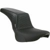 ラペラらしい自由な、遊び心をかき立てるシートです。 ライダーの着座ポジションはノーマルより低くなります。 後ろはシートストッパーのようにライダーをホールドしてくれます。 ダイナで始まったクラブスタイルカスタムがM8ソフテイルのストリートボブに広まっており、このシートはクラブスタイルカスタムに最適です。 高く切り立ったバックサポート部を利用して、スタントライディングでの様々な使い方が可能です。 テール部分は角ばった形状で上面が平らですので、短距離のタンデムライドも十分にこなせます。 座面は細かいバスケットの編み込みのような柄です。