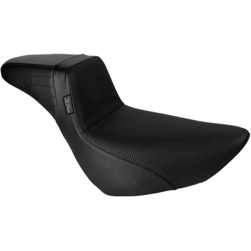M8 ローライダー/S/ST、スポーツグライド、エルディアブロ用 ダディーロング・ツーアップシートです。 <特長> ●ノーマルシートよりも2インチ(約5cm)ライダー着座位置が後方になる、ダディーロングタイプ。ポジションの余裕度が高くなり、大柄なライダーでもハンドルやフットコントロールを操作しやすくなります ●KickFlip(キックフリップ)デザイン。高いバックサポートがアグレッシブなライディングにおいてライダーをしっかりとホールドします ●シート座面はクラックなバスケット織柄