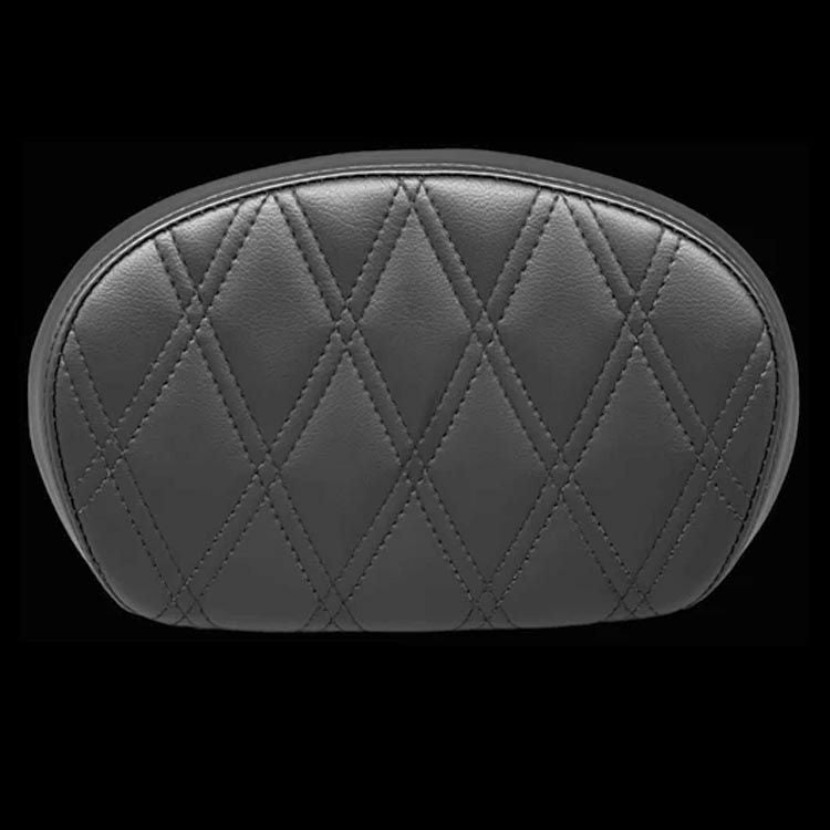 ツーリングおよびM8ソフテイルの純正デタッチャブル・アップライトシーシーバーに装着出来るバックレストパッドです。 ステッチがチェストナッツカラー(茶色と銅色のような色)で落ち着いた印象が特徴です。 ミディアムサイズですっきりとしたルックスと、タンデムライディング時のパッセンジャーの快適性を両立しています。 シート面にはダブルダイアモンドステッチ入り。 表皮は殆ど艶の無い落ち着いた風味です。 シーシーバーへの装着はLe Peraの別売 DEAD END(デッドエンド)シリーズ・バックプレートを使用できます。