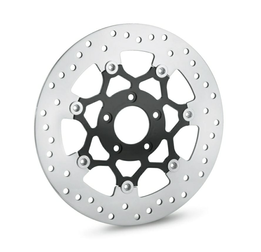 標準装備品やカスタムホイールにマッチするデザインのハーレー純正ブレーキローターです。 フローティングローターで正確でしっかりとしたブレーキングが可能です。 フロント用右もしくは左用。 左右では2枚必要。