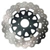 スポーツスター、ダイナ、ソフテイル、ツーリング用 フロント・フローティングウェーブブレーキローターです。 外周部分のウェーブデザインが放熱性を高め、雨天時の水はけを促進するとともに、見た目のドレスアップ効果も発揮します。 フルフローティング構造で、熱によるローター全体の変形を最小化し、ハードな使用でも常に安定したブレーキ性能を発揮します。 ディスクは炭素含有量の多い、420ステンレススチール製。熱処理により高強度、高硬度で耐久性に優れた素材です。 レーザーカットで製作されており、歪みの少ない仕上がり。更に精度の高い研磨加工でブレーキパッドとの当たりが均一になります。 キャリア部分はアルミビレットをCNCマシンによる切削加工で製作しており、軽量かつ頑丈です。耐腐食性の高いブラックカラーのアルマイト仕上げ。 リベットはステンレススチール製。アルミリベットよりもディスクの熱をキャリアへ伝えずらく、かつ頑丈です。スプリングワッシャー付きで、フローティングピンのがたつきを抑えます。 ※センターハブマウント用。(スポークマウントディスク車不可) 単品販売