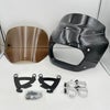 人気のロードウォリアースタイルのフェアリング。 防風効果の高くスタイリッシュなデザイン。 11インチのスモークウインドシールド、取り付けブラケットが付属します。 装着には工具が必要ですが、装着後は工具なしでフェアリングの着脱ができます。 グロスブラック塗装済み。 塗装済みでマウントキットも付属するので、すぐに取り付けが可能です。 ※この商品はメンフィスシェード製ではありません。 ファットボブ:FXFB、FXFBS