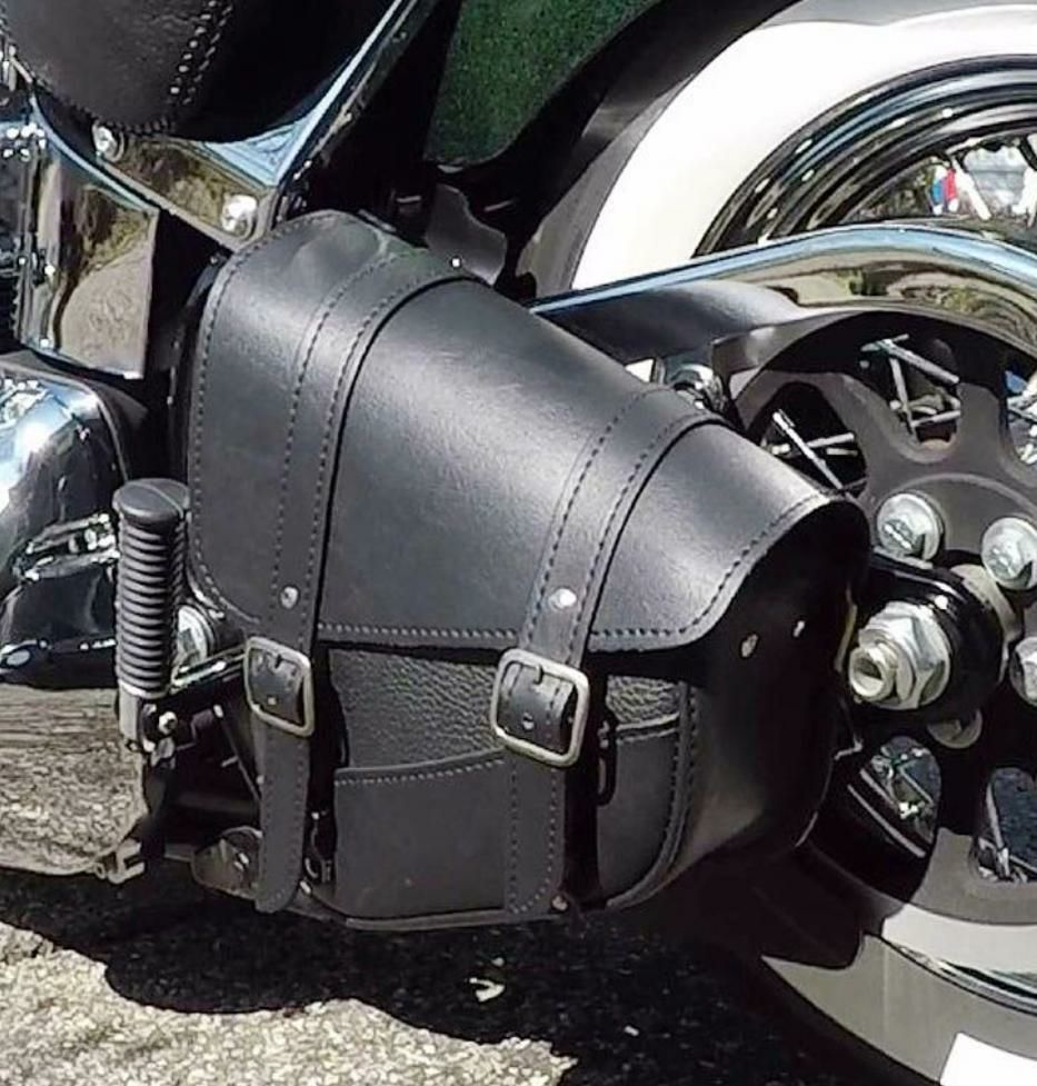 1984以降 ソフテイル ブラッククロームバックル付き本革スウィングアームバッグ