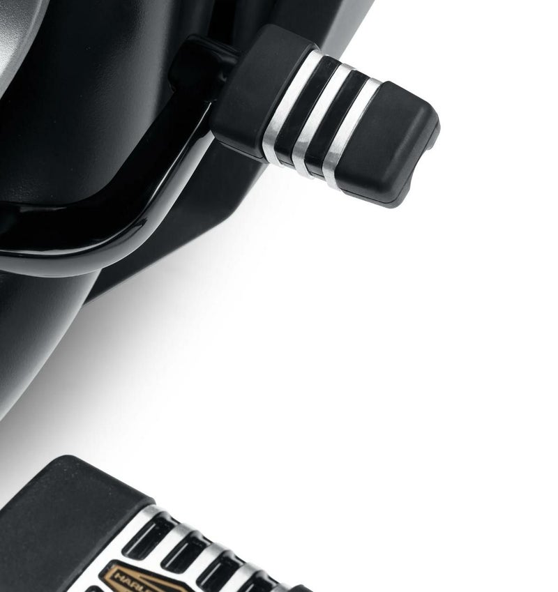 ハーレー ナイトスター(RH975)、スポーツスターS用 ブレーキペダルパッドです。 1960年代のハーレータンクエンブレムをイメージした、グロスブラックのベースに、ブラシフィニッシュのアルミカラーのコントラストが、レトロモダンなデザイン。 ブラックアウトされた車体にも、クロームのパーツにもマッチします。 ※取り付け車種用の別売ブレーキレバー(41600348 または 41600370)が必要です。 取付け用のハードウエアが付属します。