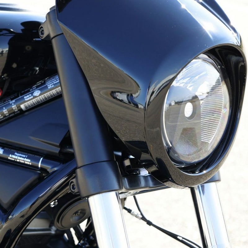 ハーレー ナイトスター用 アッパーフロントフォークカバーです。 アッパートリプル~ロワートリプルまでのスペースをブラックアウトし、引き締まったルックスにドレスアップします。 アルミニウム製。 マットブラックパウダーコート仕上げ。 ※ノーマルウィンカーは移設する必要があります。 取付けに必要なハードウェアが付属します。 左右ペア