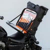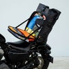 旅慣れたバイカーが作った実用的なシーシーバーバッグです。 泊りがけのツーリングにジャストサイズです。 横・縦のストラップはシーシーバーへ取り廻して固定しやすい配置になっています。 本体はバリスティックグレードの、1680デニール・ポリエステルナイロン素材。 表面はPVCコーティング処理済みです。 メインコンパートメントはビール缶が80本入る容量です。 開口部はフレキシブルなロールアップ式です。 メインコンパートメント外側には工具や小物の収納に便利なポーチ付きです。ポーチ蓋はパッド入りでバックレスト代わりになります。 更にポーチ内側のジッパーを開けば、バッグ内の荷物にアクセスできます。 左右サイドにはMOLLEシステム付。 ジッパーは耐久性、耐候性に優れたサーモプラスチック製です。 レインカバーが付属します。