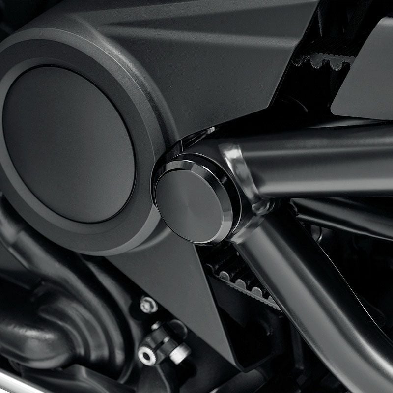スイングアームピボットボルトに装着し、スッキリとしたスタイリングを演出します。 標準ハードウェア隠すダイキャスト製ボルトカバー。 取り付けは非常に簡単です。 取り付けハードウェア付属。 左右2個セット。 ※パッセンジャーフットペグマウントキット(50502192)との併用不可。