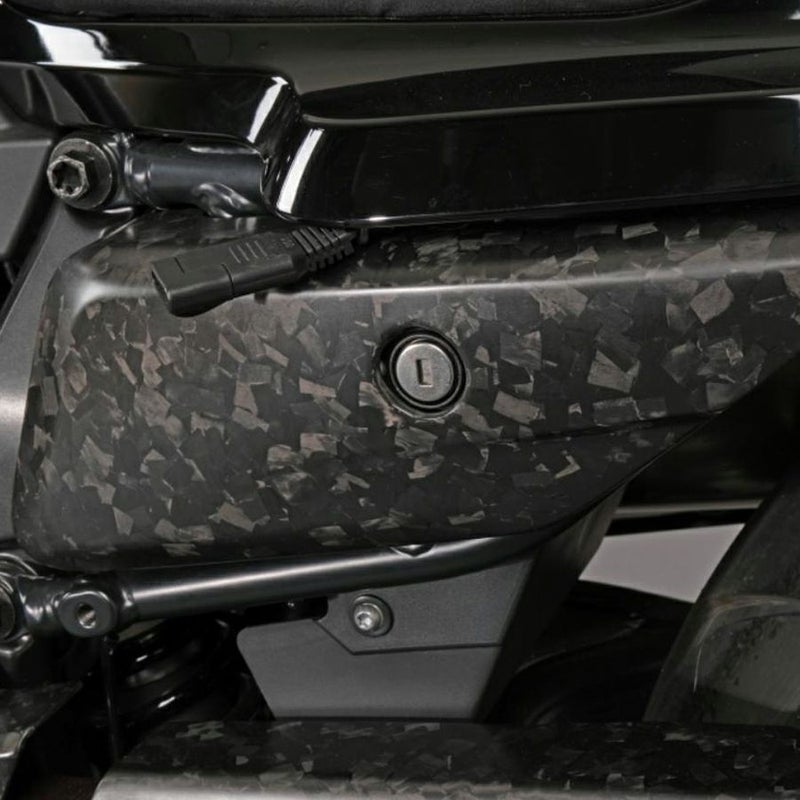 スポーツスターS用 左サイドカバーです。 素材は超軽量かつ超高強度を誇るドライカーボン製。 ウェットカーボンよりも圧倒的な高強度を誇ります。 カーボン素材をランダムに固めた、フォージドカーボンです。マーブル柄のルックスが斬新で、高級感を醸しだしています。 艶消し仕上げ。 UVカット加工済みですので、紫外線による変色がしづらくなっています。 ※写真の光沢感は現物と異なる場合があります。(参考写真)