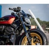ハーレー スポーツスターS フォークマウントフロントターンシグナルキットです。 取り付けブラケットはトリプルツリーを外すことなく装着可能な、ハーフクランプタイプ。 フロントから見たルックスが非常にすっきりとしています。 クランプ径は54mmです。 ターンシグナルボディはブラック。 やや縦長のシェイプでフォーク周りにすっきりと溶け込みます。 Eマーク付。日本の車検にも適合します。 ※ターンシグナルレンズはライトスモークです。商品単体の写真はレンズカラーが異なります。(参考写真) 左右ペア