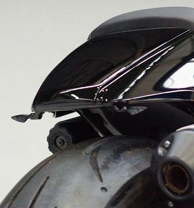 スポーツスターS用 テールライト一体型リアウィンカー用取付ステーです。 アルミニウム製。削り出し加工による質感の高い仕上がりです。 ブラックカラーのアルマイト仕上げ。 ケラーマンのRhombus S DFやBullet Atto DF等、M5スタッド付のテール/ウィンカーを装着出来ます。 (写真のテール/ウィンカーは付属しません) テールカウル下部に装着しますので、消灯時は目立たずすっきりとしたルックスですが、点灯時は後方からしっかりと視認できます。 取付け用ボルトが付属します。