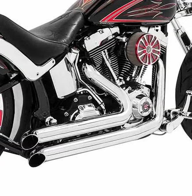迫力のターンアウト・マフラー。 ホットロッドのような音になります。 幅広タイヤ装着ソフテイル用です。 内部はバックファイヤーを抑えて、トルクを向上させる構造になっています。 標準で装着されているバッフルは整流目的のバッフルで、音量は大きめです。 オプションのクワイエット・バッフル(消音用/AC00173別売)に交換すればある程度音量を落とす事が可能です。 ヒートシールド付き。 ※別売消音バッフル:AC00173の取付をお勧めします。 ※弊社作成の日本語交換ガイドを無料でお付けします。ご希望の方は通信欄にご記入下さい。 ※マフラーを交換の際は燃料調節を行う事をお勧めします。