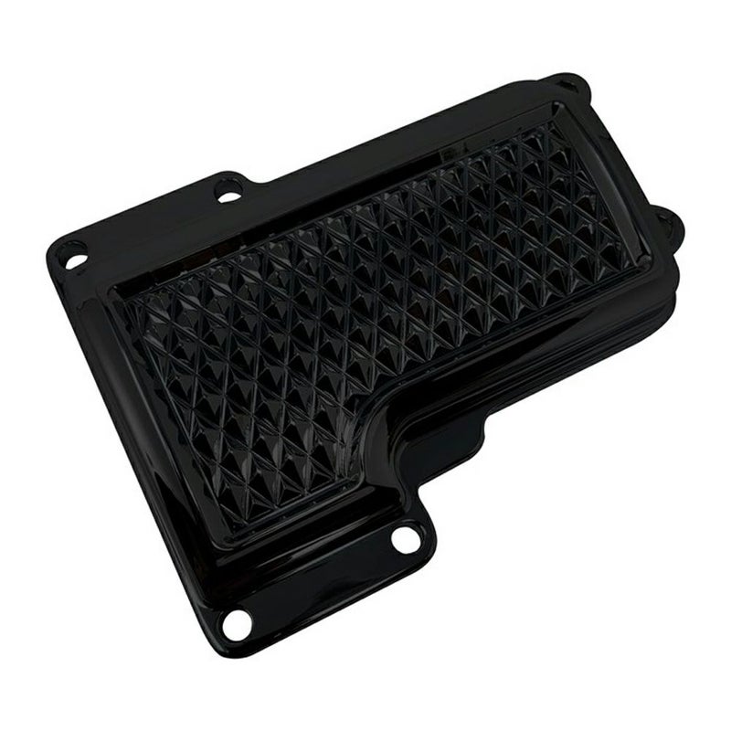 ツーリング、トライク、ダイナ、ソフテイル用 トランスミッショントップカバーです。 6速トランスミッション車用。 デザインはガラガラヘビのウロコを模した、Diamondback(ダイアモンドバック)デザイン。 ノーマルのカバーと交換するだけで愛車をゴージャスにドレスアップします。 更に同デザインのカバー類と組み合わせ、統一したカスタムルックを楽しむことも出来ます。 ビレットアルミニウム製。CNCマシンによる高精度な削り出し加工品です。 カラーは精悍なブラック。