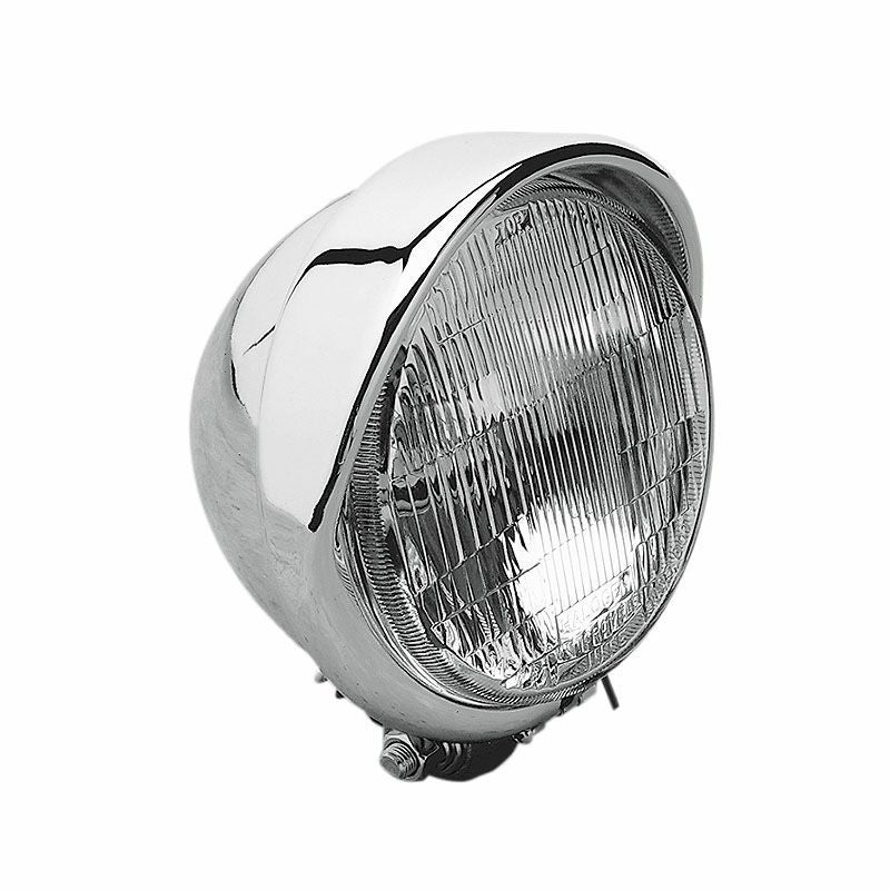 5-3/4インチ径、ボトムマウント式のバイザースタイルのヘッドライト。 パターンレンズを採用したクラシカルなデザイン。 オールドルックなカスタムには、欠かせないヘッドライトです。 ハウジング上部に、ハイビームのインジケーターライトが付いています、 H4ハロゲンバルブ使用。 55W/60W