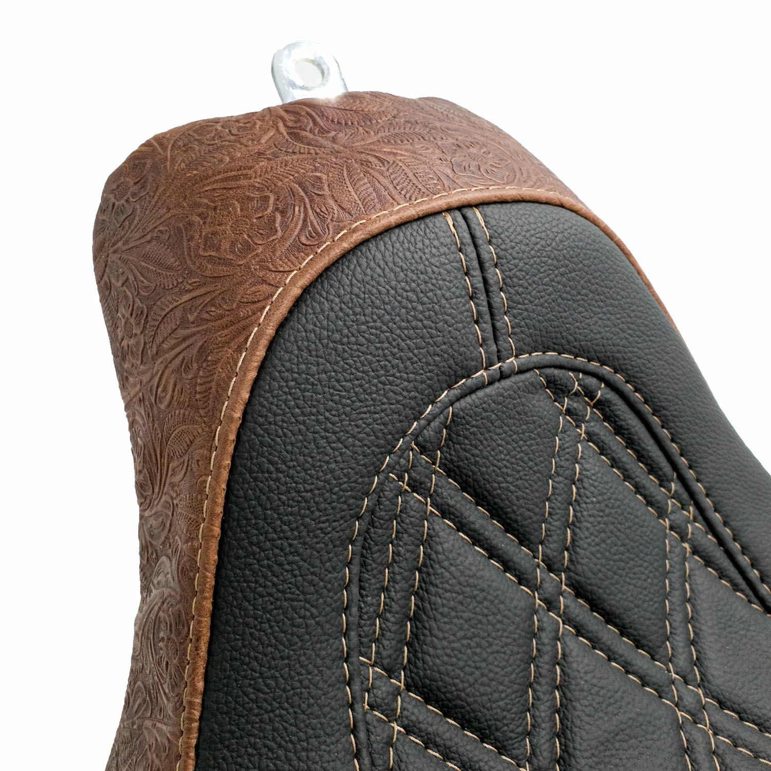 2000~2005 FLST/C/S/F リボルバー エングレーブ ソロ&パッセンジャーシート ブラウンダブルダイアモンドステッチ CMC