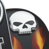 ハーレー用スカルデザインフュエルキャップです。 キャップ全体がスカルのシェイプで、一目見てインパクトのあるデザインです。 クロームカラー。スカルの鼻腔や眼窩はブラックペイント。 タンク周りのクロームパーツやカスタムペイントのタンクにもマッチします。 いっぱいにネジ込むとラチェット機構により蓋が空回りし、締めこみ過ぎを防止します。また、常にスカルの顔が真っすぐな位置に来るように出来ます。