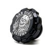 XL スポーツスター、ダイナ、ソフテイル、ツーリング、フリーホイーラー用 ねじ込み式タンクキャップです。 アルミニウム製。 周辺部分はギア型の造形。 中指を立てた骸骨の絵柄がレーザー刻印されています。 自由に回転しますので、絵柄が正面に来るように調整できます。