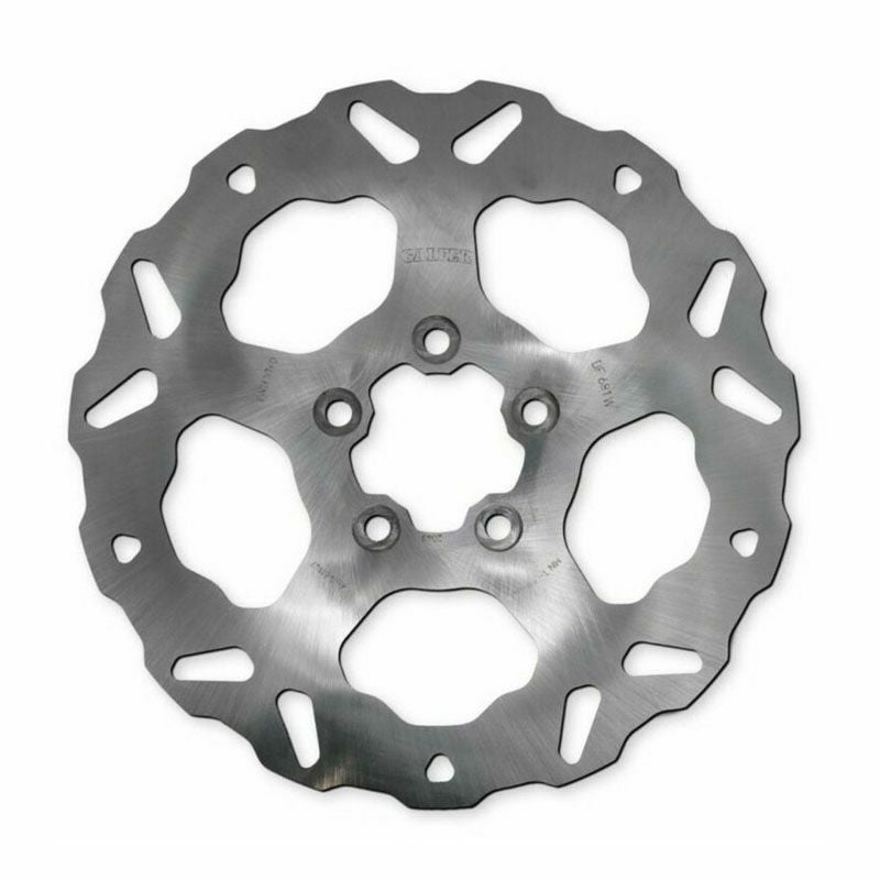 制動力はそのままに軽量で放熱性の高いウェーブディスクをラインナップしています。 ハイカーボンを含有する420ステンレス鋼を採用しています。 レーザーカットで正確に形作られたディスクは、歪みを抑えるために両面を同時に研磨しています。 リア用11.5インチのローターです。