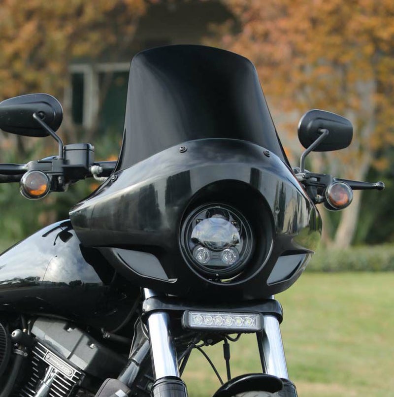 35mm~49mmフォーク径を備えた多くのオートバイに汎用取付可能なヘッドランプフェアリングです。 ヘッドランプを保護しつつ風防効果を提供する設計で、5 3/4インチ(約146mm)サイズのヘッドランプに対応しています。 マウントキットには取り付けに必要なハードウェアが含まれ、ブラケットは重厚なブラックパウダーコート仕上げのスチール製です。 <特長> ・35mm~49mmフォーク径の車両に汎用対応 ・大型の調整機構を備え、取り付け位置の微調整が可能 ・5-3/4インチヘッドランプに対応 ・成形ABS素材の本体と耐衝撃性アクリル製ウインドスクリーン ・マウントブラケットは重厚なブラックパウダーコートスチール製 ・取付用ハードウェア付属 ※取付後の光軸調整および検査確認を必ず行ってください。フェアリングの形状変更により視界や灯火類の位置が変わる場合があります。