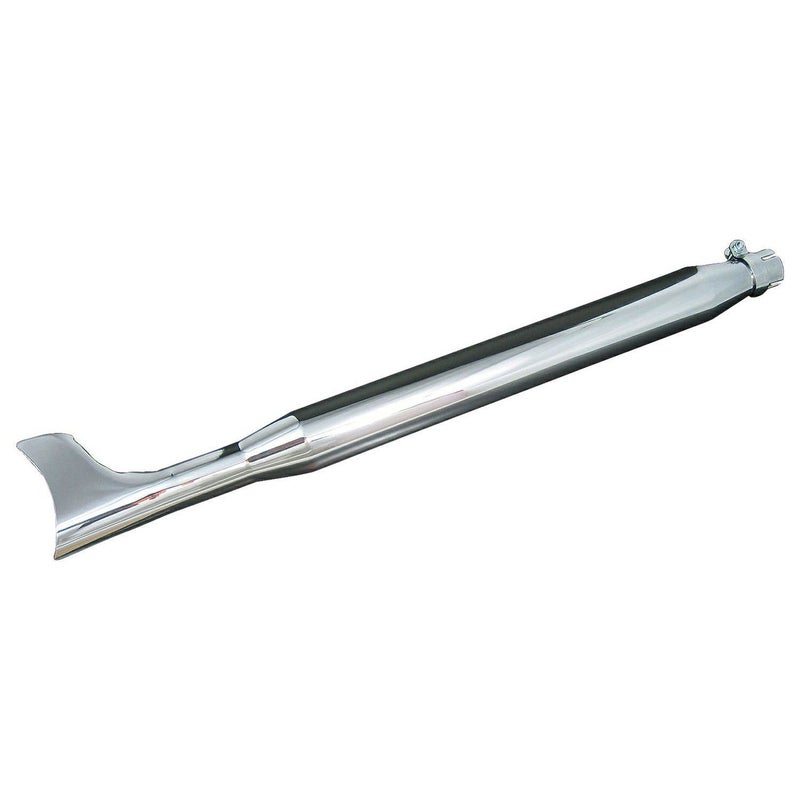 ソフテイル、ツーリング 他ハーレー用 スリップオンマフラーです。 ビンテージハーレー調のフィッシュテールスタイル。 ソフテイルやツーリングの左右二本出しスタイルが決まります。 歯切れの良い排気音になります。 径を細めた排気口と、インナーサイレンサー(脱着不可)付で排圧を確保しています。 エキパイ差込口は、1-3/4インチ(約45mm)に対応します。 ※取付け車両のエキパイ径をご確認下さい。 クランプ x 1 が付属します。 汎用品のため、取り付けにはステー等の加工が必要です。 単品販売