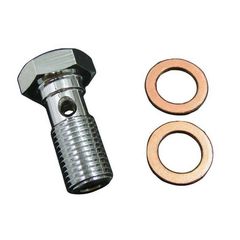 10㎜×1.25のクロームバンジョーボルトです。 標準のバンジョーからの変更や、クローム化をしたい、ブレーキラインの変更を行った際にご利用可能です。 付属品 バンジョーボルト×1本 銅ワッシャー×2枚 ※マスター側・キャリパー側の変更の場合には、2セット必要となります。 純正品番:41736-04相当品