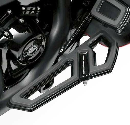 ハーレー用ライダーフットボードです。 デザインは深く刻まれた溝が特徴の、エンパイアコレクション。 クラシカルなハーレーダビッドソンのロゴがアクセントになっています。 センター部分は大胆にカットアウトされています。 上面には滑り止めのラバー付で、足をしっかりとホールドします。 鋳造ビレットアルミニウム製。 精悍なブラックアノダイズフィニッシュ。 ※FLS/S、FLSTFB/S、FLSTNへの装着には、FLSTC等の標準装備ジフィースタンド(50087-07A)が必要。 ※ジフィースタンドエクステンション(50000008、50000023、50233-00 等)および、エルゴジフィースタンド(50000091)との併用不可。 左右ペア