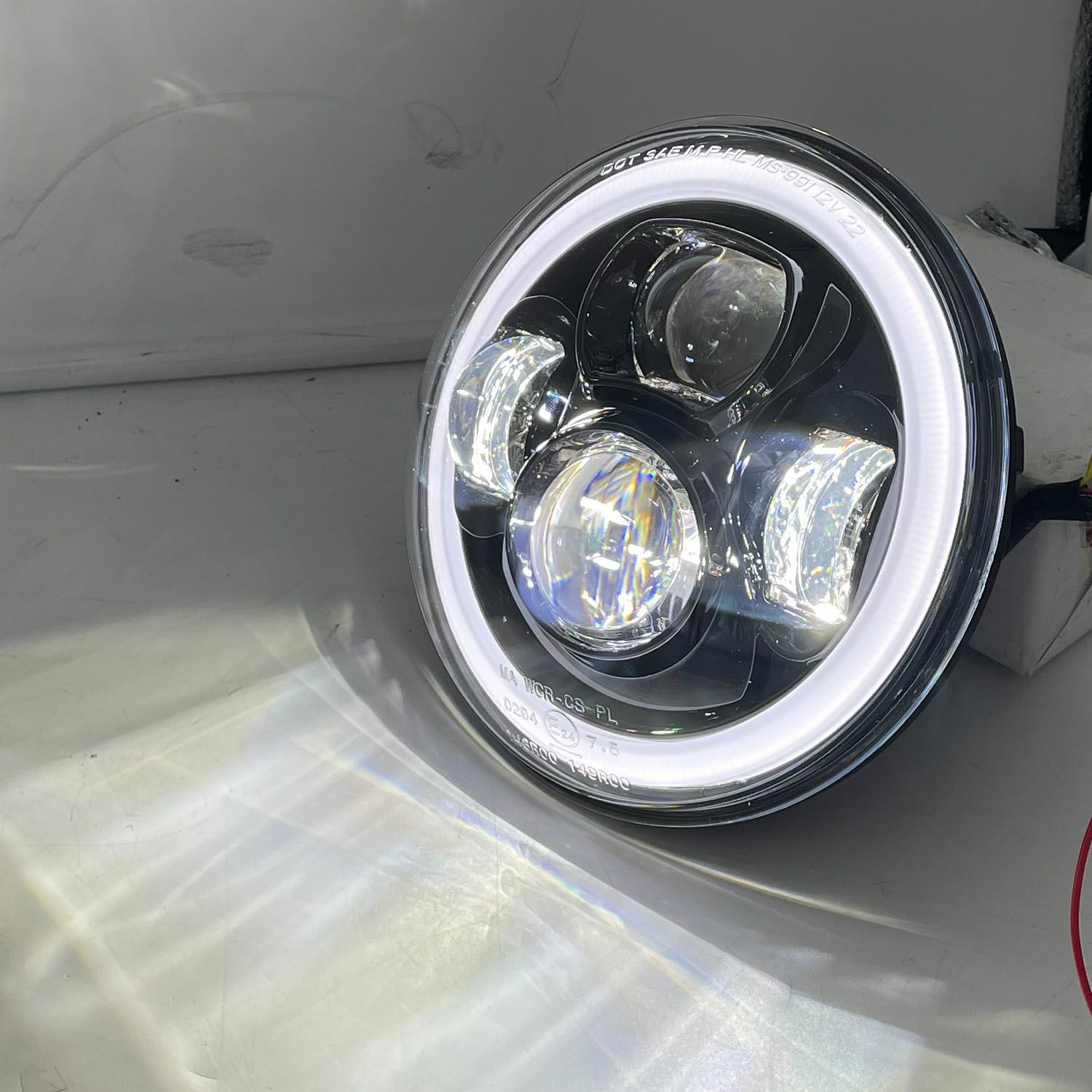 World Motor Works 7インチLEDヘッドライト ホワイトHALOリング ブラック